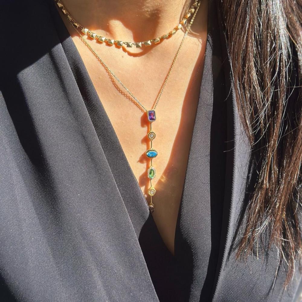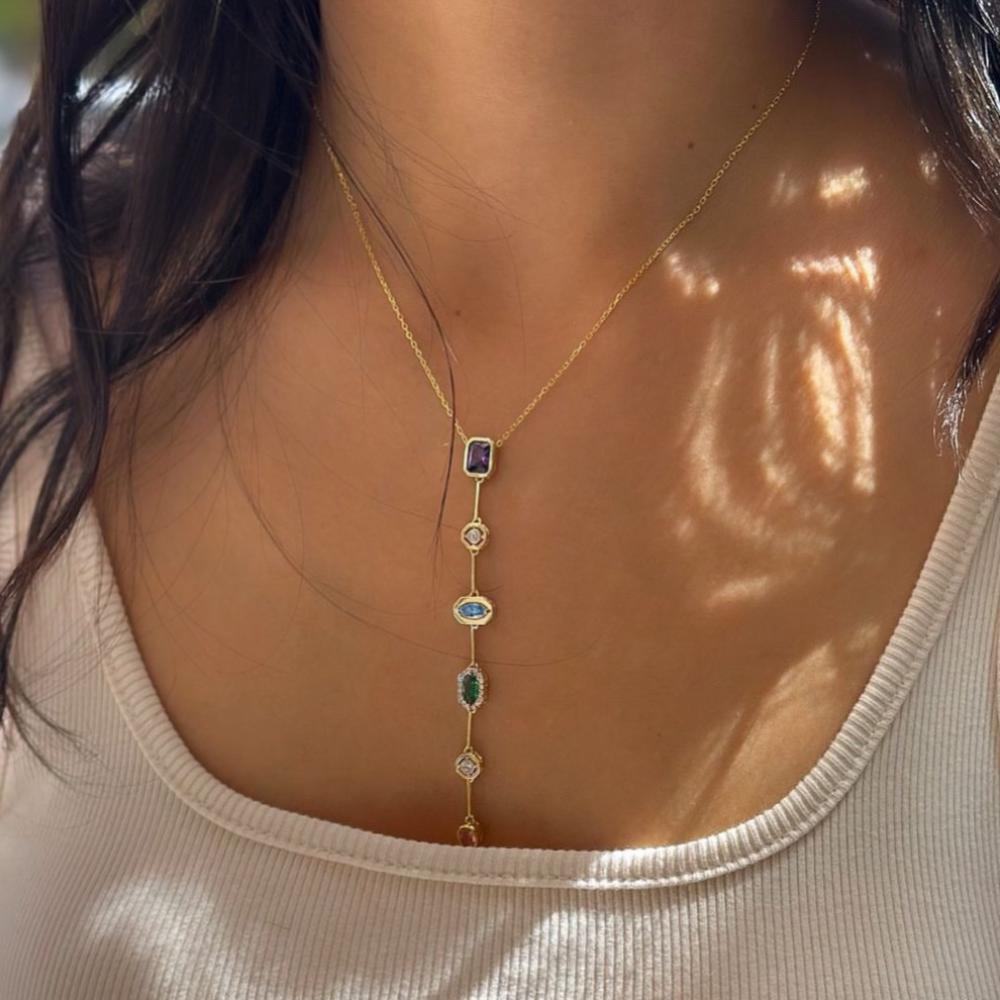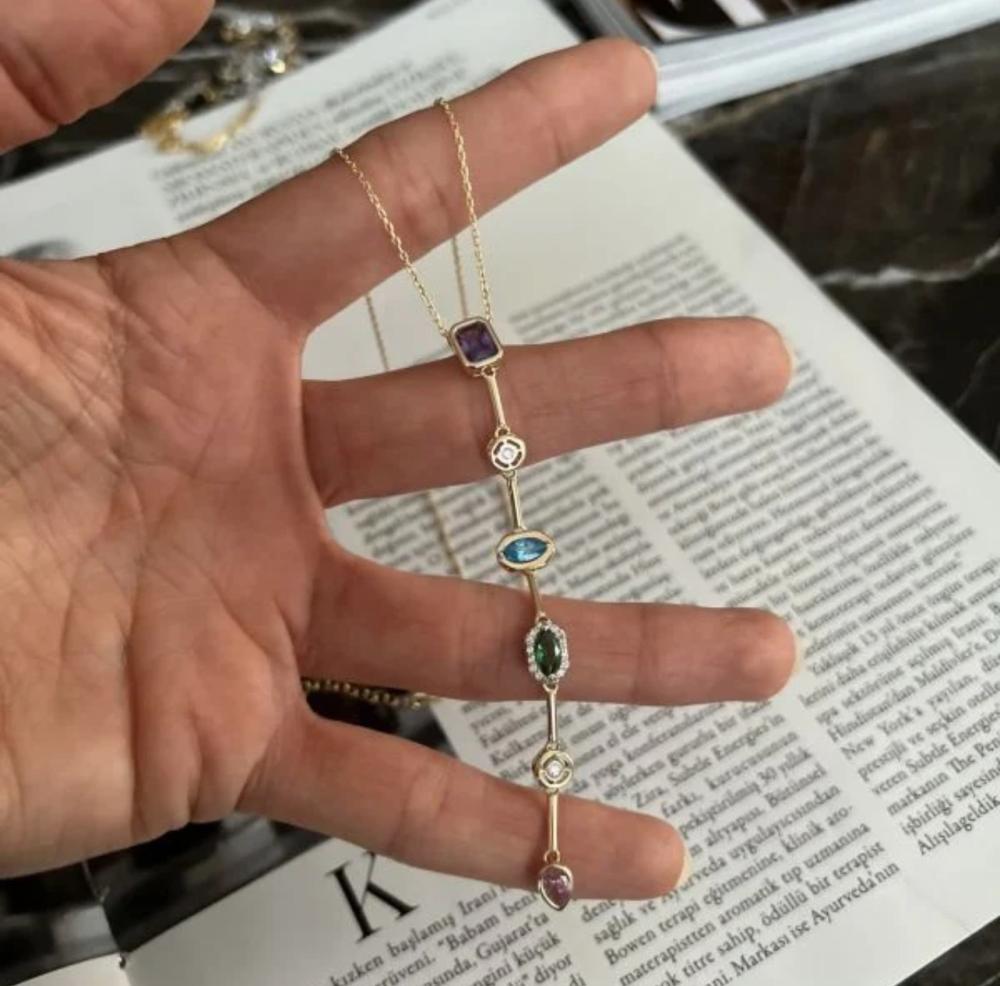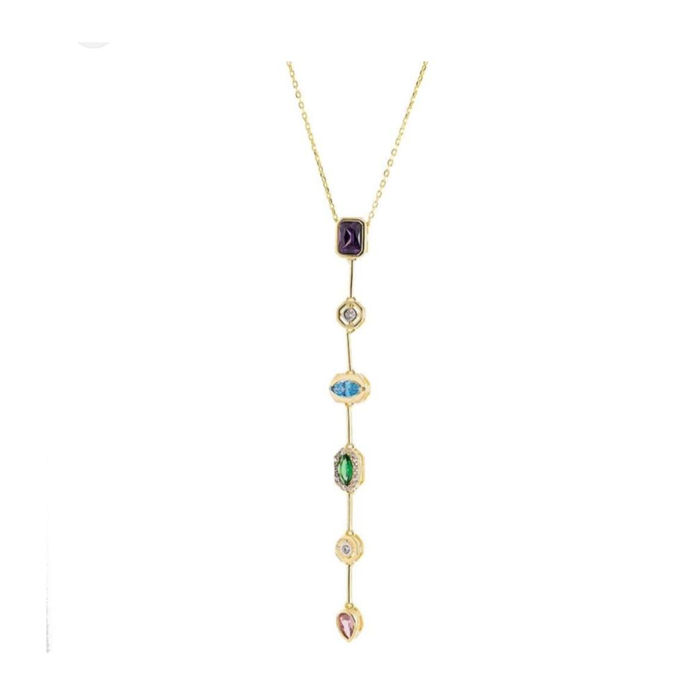 عقد الاحجار من الفضه عيار ٩٢٥ مطلية بالذهب مزينة بأحجار الزركون الملونه