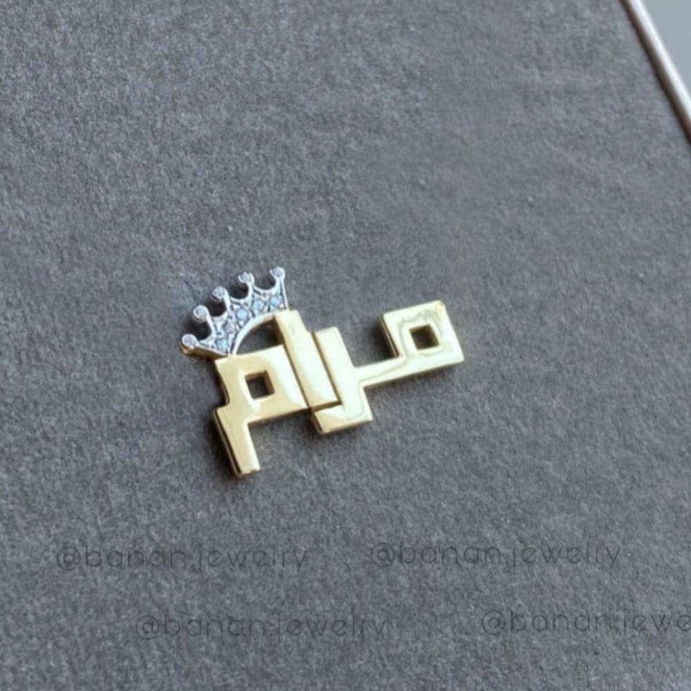 بروش إسم من اختيارك مزين بقطعة مصممة على شكل تاج مرصعة بأحجار الزركون يمكننا تصميم أي إسم من إختيارك بتصميم خاص وحصري من مجوهرات بَنان