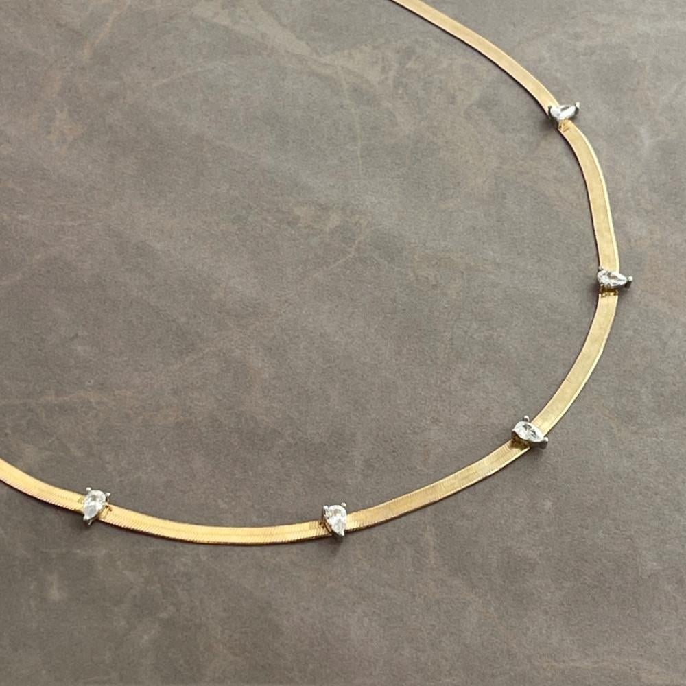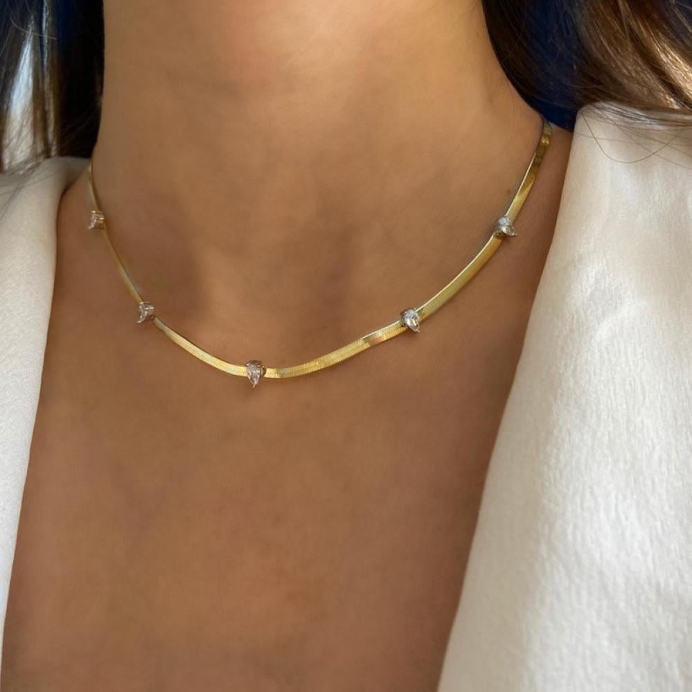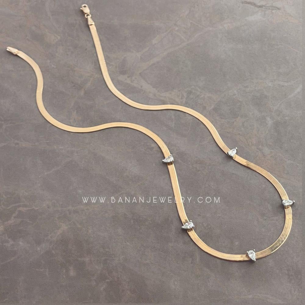 عقد فلات من الفضه عيار ٩٢٥ مطلية بالذهب مزبنة بأحجار ماركيز