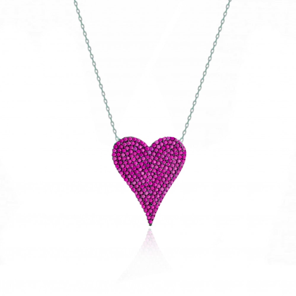 تصميم عقد بتصنيم قلب مزين بأحجار الزركون بألوان متعددة من مجوهرات بَنان