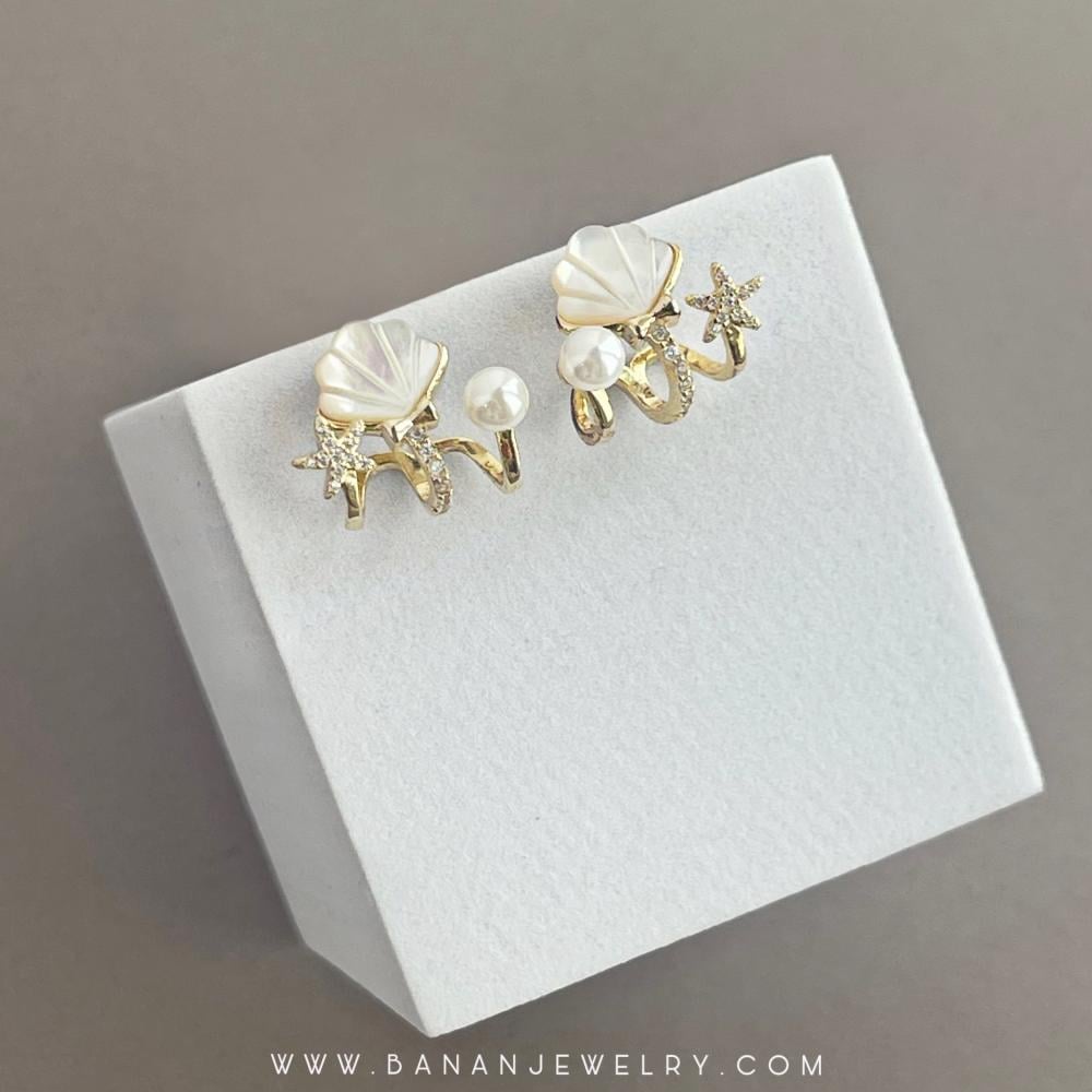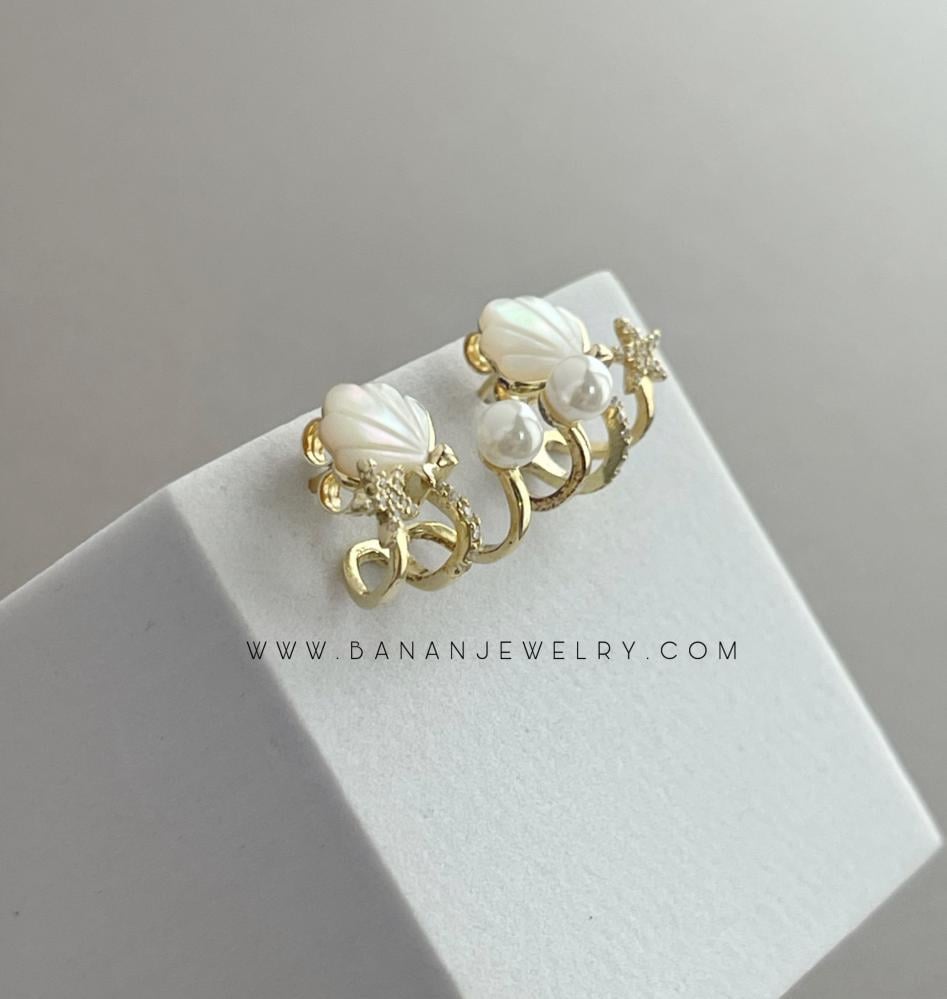 حلق بتصميم صدف على شكل صدف البحر مزبن بحبات اللولو واحجار الزركون
