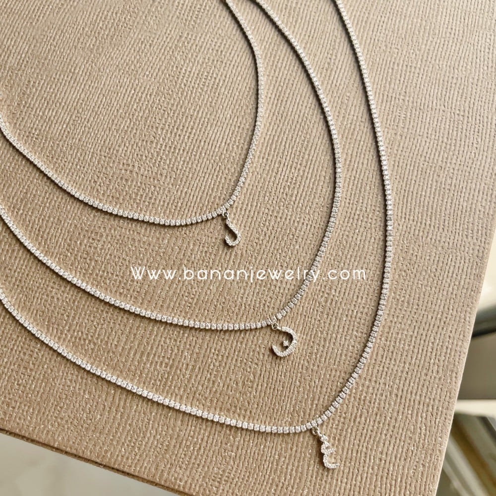 تصميم عقد شوكر تنس مزين بحرف من مجوهرات بَنان