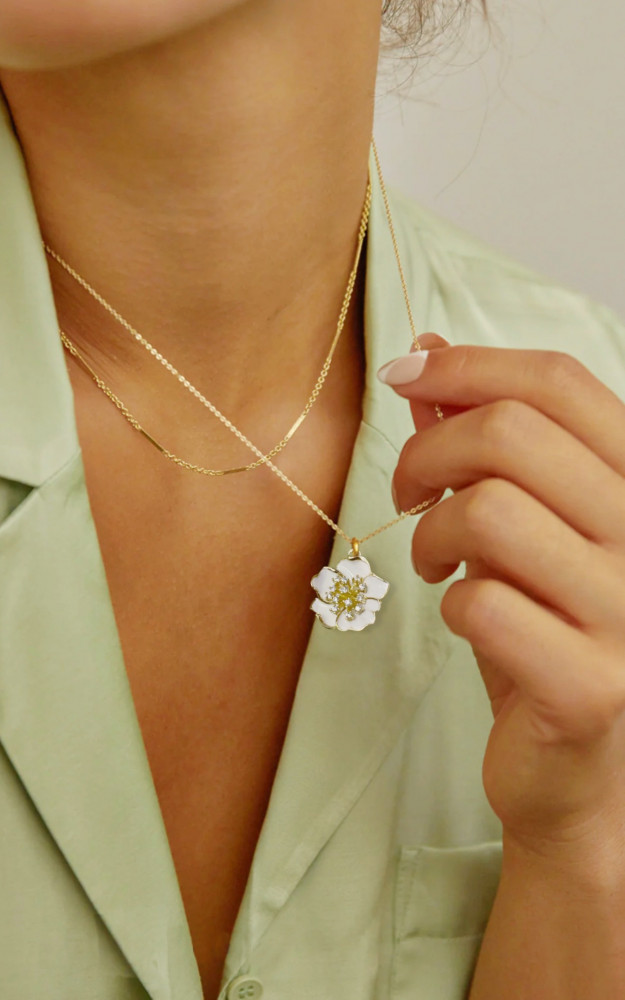 تصميم عقد روز الأبيض .. من مجموعة ورد .. مستوحى من جمال أوراق الربيع من مجوهرات بَنان