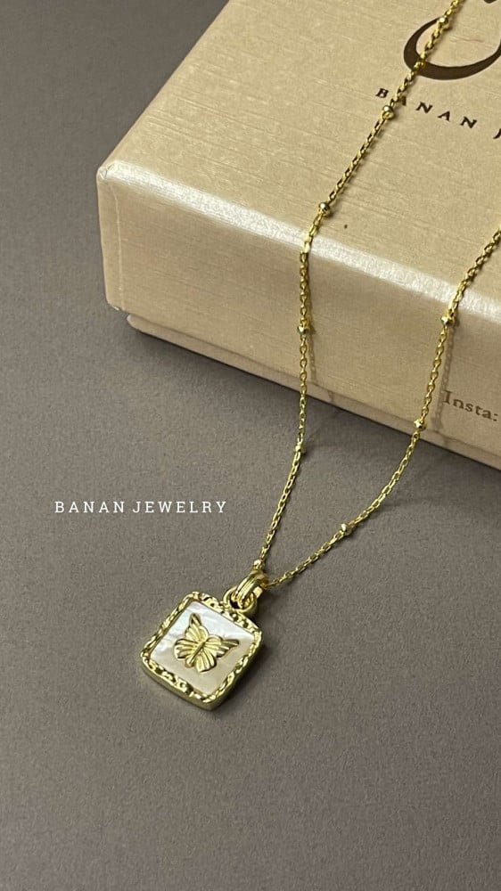 تصميم عقد صدفي مع فراشة من مجوهرات بَنان